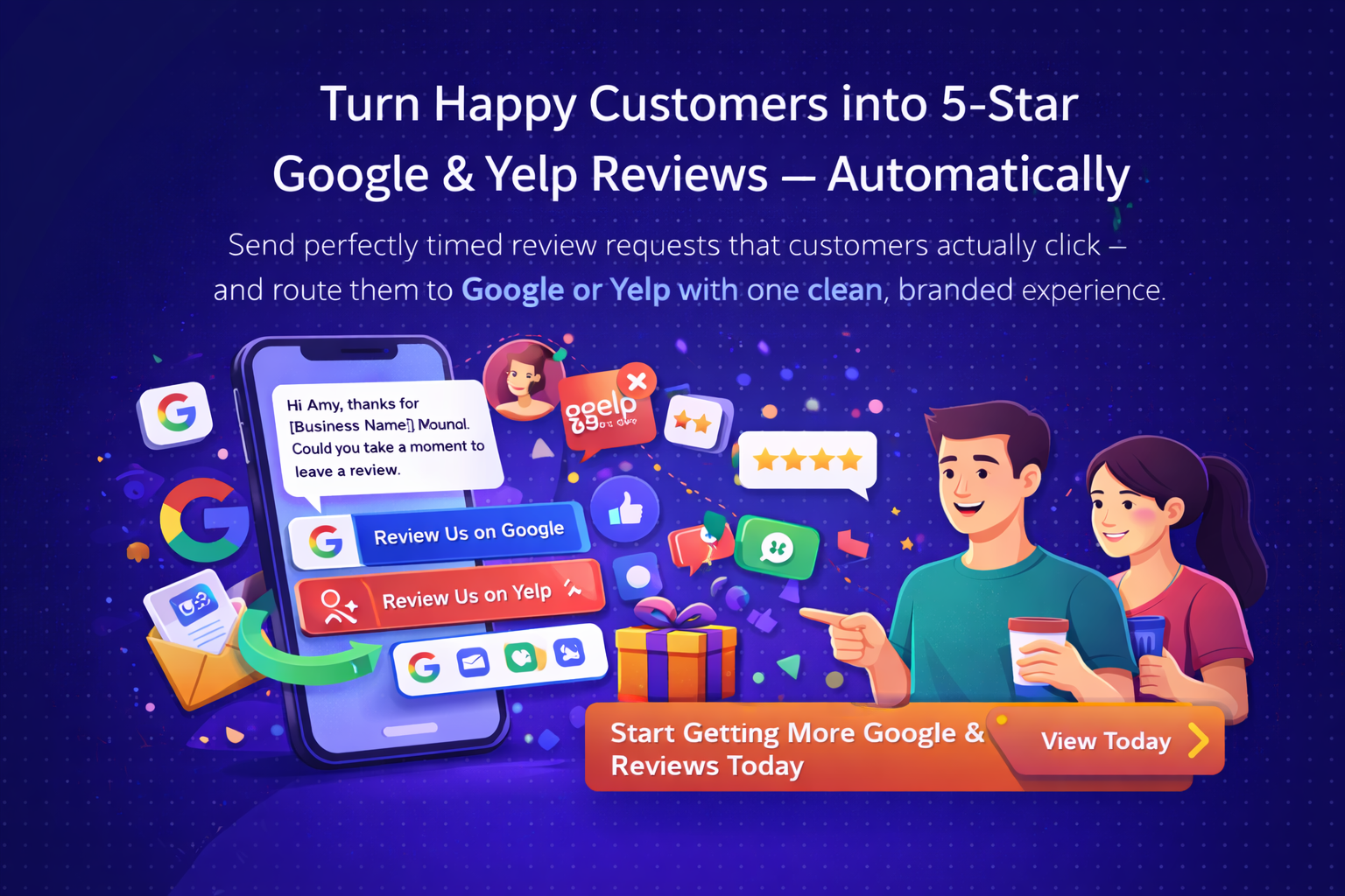 Turn Happy Customers into 5-Star Google & Yelp Reviews — Automatically
