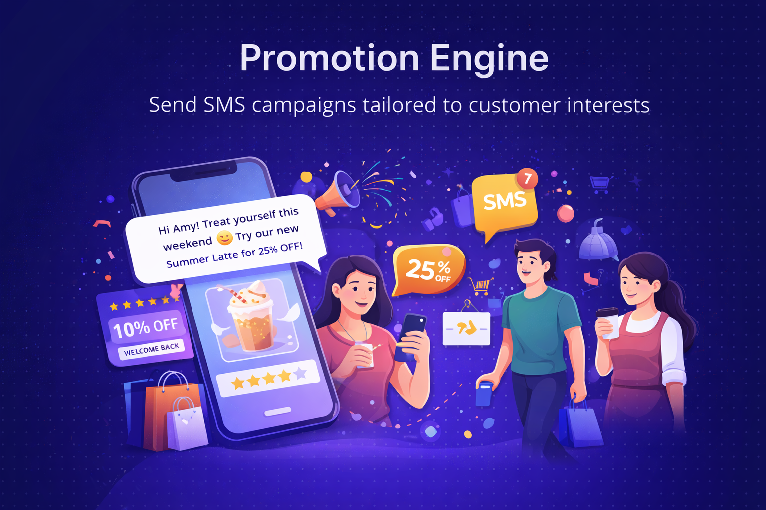 With Promotion Engine, store owners can send event announcements, special offers, and limited-time discounts directly via SMS to customers who have actually visited, checked in, and opted in to receive messages.